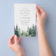 Rustic elegant low budget wedding invitation paper flyer template with watercolor pine trees forest landscape and with a chic simple classy minimalist typography script. +++++++++++ Suitable for summer autumn fall or winter mountains, outdoor camping adventures woodland wilderness destination weddings. +++++++++++++++++++ PLEASE READ THIS BEFORE PURCHASING! This is a budget affordable wedding paper printed on a FLYER (advertising type of paper). ++++ Please note that BUDGET PAPER IS THIN - You can upgrade to have this card printed on cardstock ++++ ENVELOPES NOT INCLUDED. +++ Double-check all the information and spelling of your text because you will receive exactly what you see - no one else will check anything before printing.