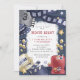 Our "Movie Night Kid's Birthday" collection features a dark blue background with a white cloud detail in the middle where all your birthday party information is written. Watercolor illustrations of various movie and cinema themed items are shown throughout the collection: movie seats, movie tickets, popcorn etc. Check our store for more matching items from this collection.