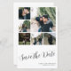 Elegant chic simple trendy casual handwriting calligraphy script 6 engagement couple photo collage personalized budget affordable wedding save the date card template. Easy to customize on both sides with your text and pictures.