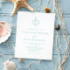 This budget elegant minimalist nautical wedding invitation design features an anchor monogram at the top with the initials of the bride and groom, with a simple white background and sea glass blue text, and a touch of script calligraphy for the "and". The back has a matching sea glass blue background.