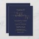 This elegant budget wedding invitation can be personalized with your celebration details set in chic gold typography on a navy blue background. Designed by Thisisnotme©