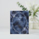 This elegant modern wedding invitation features a silver geometric frame decorated with navy blue and silver floral bouquets on a navy blue faux foil background. The customizable text combines silver gray whimsical handwriting, copperplate and italic fonts. The reverse side is solid navy blue.