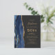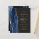 The left-hand edge of this elegant modern 50th birthday party invitation features a navy blue watercolor agate border trimmed with gold faux glitter. The customizable text combines gold-colored handwriting, copperplate and italic fonts on a slate black background. The reverse side features a matching navy blue and gold agate design. NOTE: Envelopes are not automatically included with these budget invitations, so please remember to choose the "blank white envelopes" option!