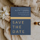 Budget Wedding Elegant Navy Blue and Gold Save the Date Cards. The Save the Date cards contain a modern hand lettered cursive script typography that are elegant, simple and modern to use after you minimalist simple wedding day celebration.