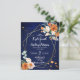 Budget navy blue orange white roses wedding invite