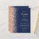 The left-hand edge of this elegant modern wedding invitation features a peach faux glitter border. The customizable text combines pale peach handwriting, copperplate and italic fonts on a navy blue background. The reverse side features a matching navy blue and peach glitter design. NOTE: Envelopes are not automatically included with these budget invitations, so please remember to choose the "blank white envelopes" option!