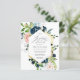 Invite your bridal brunch guests in style with this elegant custom budget floral invitation featuring hand painted navy blue and blush pink watercolor roses with greenery. Personalize with all of your bridal brunch details in black modern black script typography. The back of the card has a navy blue watercolor texture. Designed by Susan Coffey.