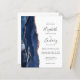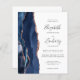 The left-hand edge of this elegant modern wedding invitation features a navy blue watercolor agate border trimmed with faux rose gold glitter. The customizable text combines handwriting, copperplate and italic fonts in charcoal gray on a white background. Add additional details on the back, along with a QR code to help your guests visit your wedding website.