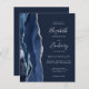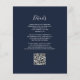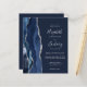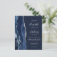 The left-hand edge of this elegant modern wedding invitation features a navy blue watercolor agate border trimmed with faux silver glitter. The customizable text combines handwriting, copperplate and italic fonts in light silver gray on a navy blue background. The reverse side provides space for wedding details on a solid navy blue background, along with a QR code guests can scan to visit your website and RSVP.