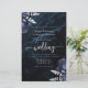 Budget Navy Blue Silver Floral Wedding Invitation