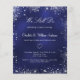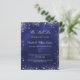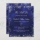 A modern, elegant vow renewal invitation. Navy blue background decorated with faux silver glitter sparkles. The blue color is uneven. Personalize and add your names and party details. White colored letters.