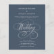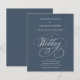 Elegant budget Navy Blue & White Classic Wedding Invitation. Design features calligraphy script ''wedding'' in trendy lettering on a navy blue background.
