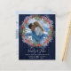 Elegant and modern invitation for that winter or Christmas wedding. This design features a chic floral wreath with berries and winter foliage framing your favorite couples photo, all on a navy blue, rustic wood background. Customize the information on the front and reverse of this design to create your unique and special invitation.
