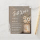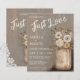 Budget Nothing Fancy Just Love Mason Jar Wedding Invitation. Embrace a farmhouse aesthetic with this delightful wedding invitation. A beautifully illustrated mason jar overflowing with soft, neutral-toned flowers sits atop a weathered wood background. The heartwarming phrase nothing fancy 'Just Love' is elegantly scripted. This invitation is ideal for couples seeking a simple yet sophisticated announcement for their wedding, promising a celebration filled with genuine affection and rustic charm. This rustic invitation is perfect for a country or barn wedding. The weathered wood background adds a touch of rustic elegance, making this invitation a beautiful way to announce your special day.