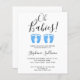 This budget twin baby boys baby shower invitation is decorated with modern typography and cute watercolor baby's feet in pastel blue.