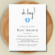 This Budget Boy's Baby Shower Invitation is decorated with blue watercolor baby feet and Oh Boy! in stylish calligraphy.
