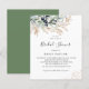 This Budget Greenery Olive Branch Botanical Bridal Shower Invitation - features lush greenery and golden olive branches, golden drops with modern script text. The reverse side of the bridal invitation is elegant dark olive green.