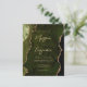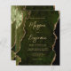 This elegant wedding invitation features a background image of olive green watercolor agate trimmed with faux gold glitter. The customizable text combines gold-colored modern handwriting, copperplate and italic fonts. The reverse side provides space for wedding details on a matching green agate background, along with a QR code guests can scan to visit your website and RSVP, which saves the cost of printing and mailing separate RSVP cards.