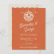 Budget Retro Groovy 70s Cute Ivory Orange Disco Wedding Invitation with Photo Back