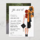 Budget Grad Girl with Black and Orange Balloons Custom Year Modern Minimalist Photo She Did It Graduation Invitation