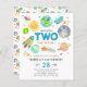 Modern Outer Space Galaxy Moon Rocket Spaceship Alien Kid We're Going TWO the Moon 2nd Birthday Invitation