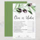 Add interactive fun to your celebration with our Budget Over or Under Olive Bridal Shower Game, designed to keep guests entertained while honoring the bride-to-be. Featuring elegant olive branch accents, this game card combines natural beauty with a touch of sophistication. The minimalist greenery design makes it versatile, blending seamlessly with rustic, boho, or modern shower themes. Guests will enjoy guessing whether each statement about the bride and groom is over or under, sparking laughter and conversation. Printed on quality cardstock, it provides a smooth surface for writing and durability for keepsake value. Its stylish layout is easy to read, ensuring everyone can join in without confusion. The fresh olive details add a calming and chic touch to your décor. Both budget-friendly and beautiful, this game card is a perfect mix of entertainment and elegance.