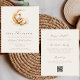This cute boho baby shower invitation features a sweet watercolor teddy bear asleep on a crescent moon above the words "over the moon" in brown handwriting script. Personalize the text with the name of the mom-to-be in script and the details in sans serif font on a beige background. The reverse side provides space for diaper raffle, books for baby, and registry details, along with a convenient QR code guests can scan to visit the registry. Ideal for a gender-neutral baby shower.