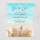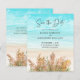 Will you be holding your wedding ceremony in the south or perhaps on the beach? Our colorful budget Save the Date card helps you envision the scene with a boho floral arrangement of pampas grass stalks in shades of gold, rose gold, and green set on a sandy beach. The "Save the Date" text illustration is displayed in an elegant script font and all other text on front and back of the card can be easily personalized by you on the template.