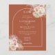 Beautiful floral pampas grass watercolors with a chic arch framing your special wedding celebration details and monogram initials set in stylish typography on a terracotta background and your special photo on the reverse on this elegant budget wedding invitation. Designed by Thisisnotme©