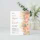 BUDGET Tropical watercolor dried flowers, palm leaves and pampas grass fall wedding invitation. It displays an arrangement of dried palm leaves, protea and rose flowers and pampas grass along the right side. The back includes a soft terracotta background.