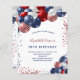 A chic white background. Decorated with patriotic colored balloons in red blue and white. Personalize and add a name and party details. The name is written with a hand lettered style script.