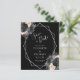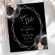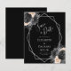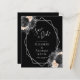 This elegant modern wedding save the date card features a silver geometric frame decorated with peach, black and silver floral bouquets on a black background. The customizable text combines silver gray whimsical handwriting, copperplate and italic fonts. The reverse side is solid black.