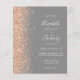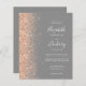 The left-hand edge of this elegant modern wedding invitation features a peach faux glitter border. The customizable text combines white handwriting, copperplate and italic fonts on a gray background. The reverse side provides space for wedding details on a solid gray background, along with a QR code guests can scan to visit your website and RSVP, which saves the cost of printing and mailing separate RSVP cards.