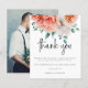 PLEASE NOTE There are two paper options to choose from for this size (4.5 x 5.6”) in the Budget range. For this product, I would highly recommend the semi-gloss which is a 110 gsm card stock, similar in thickness to a postcard. The Satin option is a much thinner paper 80gsm. The default is set to semi-gloss. Budget Peach Peonies Photo Wedding Thank You. Beautiful peach and white peonies an foliage are at the top. The font color and type can be changed via the edit menu. Replace the sample photo on the back with your own favorite from your wedding day.