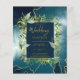 BUDGET Peacock Blue Gold Greenery Wedding Invites