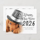 A budget price smaller 4.5 x 5.6” alternative on 110lbs stock, similar in thickness to a postcard. There is ONE per sheet. Budget Pet Photo Overlay Script Happy New Year 2026 Calendar. A playful set script for Happy New Year 2026 and the rest of the text is easy to personalise. Replace the sample photo with your own cute picture of your pet. A gradient overlay layer is on top of your photo so it fades out as it reaches the center with the text partially overlaid on top. On the back is a handy 2026 calendar for your recipients.