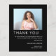 A value for money BUDGET alternative on a smaller size 4.5 x 5.6” semi-gloss 110lbs weight, which is of similar thickness to a postcard (however is not suitable to use as a postcard.). PLEASE NOTE there is ONE per sheet. Budget Simple Photo 2022 Graduation Black Thank You. Say Thanks after your grad celebrations with this minimalist contemporary style with your photo. Easily personalize the text and replace the photo in the template with your own.