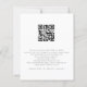 A value for money BUDGET alternative on a smaller size 4.5 x 5.6” semi-gloss 110lbs weight, which is of similar thickness to a postcard (however is not suitable to use as a postcard.). PLEASE NOTE there is ONE invite per sheet. Budget Photo Transparent Overlay Background QR Code Wedding Invitation. Simply replace the sample photo with your own favorite which is faded in to the background. The Wedding Of is in a modern set script with swashes and easily personalise the rest of the text. If you have a wedding website, add your QR code to the reply page of your wedding website on the back by replacing the QR code on the sample for a convenient way for your guests to rsvp. Or delete this code and text if not required via customise further. You can create QR codes for free online. Simply search “QR code creator” and lots of options come up to create for free.