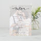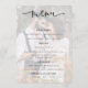 Modern Photo Transparent Overlay Script Wedding Menu. An informal set typography in black for the main heading Menu complementing the rest of the text which you can easily personalise. Replace the sample photo which is tinted in the background with your own favorite.
