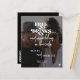 Free drinks and a wedding on the side funny simple photo overlay black and white trendy retro bold typography informal budget affordable wedding invitation card with a funny casual modern typography script.