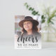 The front of this 60th birthday invitation features the guest of honor's photo with a black text overlay. The word "cheers" appears in elegant calligraphy script, followed by "to 60 years" and the guest of honor's name and birthday in sans serif font. A white screen helps make the text pop. Customize the reverse side with the name and party details on a white background. A great way to celebrate someone who's turning sixty! (NOTE: Envelopes are not included automatically with this budget invitation. To add envelopes to your order, please use the "Envelopes" drop-down menu.)