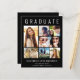 Elegant budget-friendly black graduation announcement to celebrate the graduate featuring "Graduate" across the top in large white typography, a 7 photo collage and his or her name, class year and school in modern white typography. On the back add an additional photo and a custom message. This budget semi-gloss paper is similar in weight to photo paper. A larger thicker 5x7 traditional card stock version is also available (message us for the link).