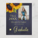 Rustic country style 4 PHOTO collage graduation party stylish invitation template on dark midnight navy blue chalkboard background featuring big yellow gold sunflowers bouquets. ++++++++++++++++++ Personalize with your text and images on both sides! ++++++++++ The invitation is suitable for outdoor garden / backyard rustic country graduation parties. ++++++++++++++++++++++ PLEASE READ THIS BEFORE PURCHASING! This is a budget affordable wedding card printed on a paper sheet (each sheet has one card). ++++ For the best rapport price quality, our advice is to choose the Semi-Gloss paper type (it is thick enough to be used for stationery) ++++ If you need envelopes, choose the ENVELOPE OPTION. +++ Double-check all the information and spelling of your text because you will receive exactly what you see - no one else will check anything before printing. ++++ This card is designed for size 4.5" x 5.6". In the case you choose another size of the card and text goes outside page, everything needs to be fixed before adding the product to cart. Please ask Live Design Service for help.