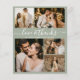 Postcard: https://www.zazzle.com/chic_green_love_and_thanks_wedding_thank_you_postcard-256667078093878141 Traditional Cardstock with Envelopes: https://www.zazzle.com/love_and_thanks_sage_photo_collage_wedding_thank_you_card-256541493303730145 https://www.zazzle.com/love_and_thanks_script_green_photo_collage_wedding_thank_you_card-256679665287522574 Easy to customize with your name, photos and thank you message. If you prefer to handwrite your note, just delete the sample text to make more space. Please contact me if you need help with this design.