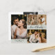 Budget, Elegant, Minimalist Hand Lettered 4 Photo Collage Sage Green Wedding Thank You personalized affordable low budget thin card. Stylish wedding thank you card template featuring four photo on the front and one photo on the back. With the text "Love and thanks" in a swirly hand lettered typography script font with swash or in black on white background.