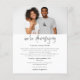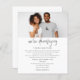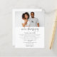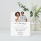 A budget price smaller 4.5" x 5.6" paper alternative with the option to add envelopes if you wish. If circumstances mean it has been necessary to downsize your wedding, invite your guests to the livestreaming of your ceremony and advise you are downsizing. This design has your phot at the top and typography beneath, with We’re downsizing in a stylish set script. The rest of the text you can easily personalise. You can also change text and background colors on either side if you wish via the Customize Further option.