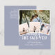 ⭐ Design by LeahG™ Founder of the Low Budget Wedding Network®. Congratulations on your engagement. 📌PIN this design to your wedding moodboard on Pinterest and enjoy your wedding planning journey. 🥰 Your friends and family will love this modern trendy 4 x photo collage engagement announcement or party invitation. Double-sided to ensure you can add all your event details. Modern overlay text that reads " Finally, she said yes!" You can EDIT THIS to read anything else, such as "We are doing it'", "we are getting hitched", "we are saying I do" and more! Be creative. 🖊️ Lots of color backgrounds to choose from and low budget options (from 0.30) view the attached collection to see them all. ⭐ NOTE that paper weight and size reflects in the prices. For regular cardstock (5x7) use the TRANSFER option on your product page. Most of my designs include template fields on both sides (where allowed by the product) to ensure you get the most value and practical benefit. In the case of invitations, this enables you to include rsvp, gift registry, wedding website, reception details, and, in the most recent designs, a qr scanning code. For other items, you can add text or images as required for your event. Enjoy your wedding planning journey. ©Design and Text LeahG™