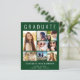 Modern, elegant and budget-friendly green graduation announcement and party invitation featuring "GRADUATE" across the top in large white letters, a seven photo collage and their name, class year and school in simple white typography. On the back add the graduation party details.