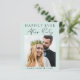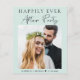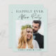 Budget-friendly mint green elopement or private wedding announcement and reception or celebration party invitation. The front features your photo, "Happily Ever After Party" in a mix of simple typography and a chic modern script and your first names and wedding date. On the reverse side, personalize your message and reception details, input your wedding website address to create a QR code for guests to scan for more information and to RSVP online, and add your names in a signature-like script.