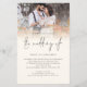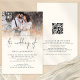 PLEASE NOTE there is ONE invite per sheet. Budget Photo QR Code Script Cream Wedding Invitation. A LARGER size 5.5” x 8.5” at a budget price,. PLEASE NOTE THE OPTIONAL ENVELOPES ARE A LITTLE BIGGER IN SIZE AT 6.75” x 9” approx. With a QR code to your wedding website on the back so your guests can RSVP and see all the details online without the need for separate enclosures. Your QR code will be automatically generated to update the sample code in the design, when you simply change the sample URL in the template with your own wedding website URL. An informal set typography in black for the main heading the Wedding Of complementing the rest of the text which you can easily personalise. Replace the sample photo with your own favorite.